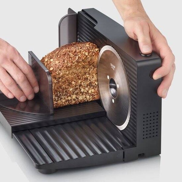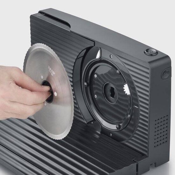Dankzij het afneembare mes van roestvrij staal van RSG Solingen is het schoonmaken van de snijmachine een fluitje van een cent. Het mes kan worden losgekoppeld voor grondige reiniging, waardoor hygiëne gegarandeerd is.