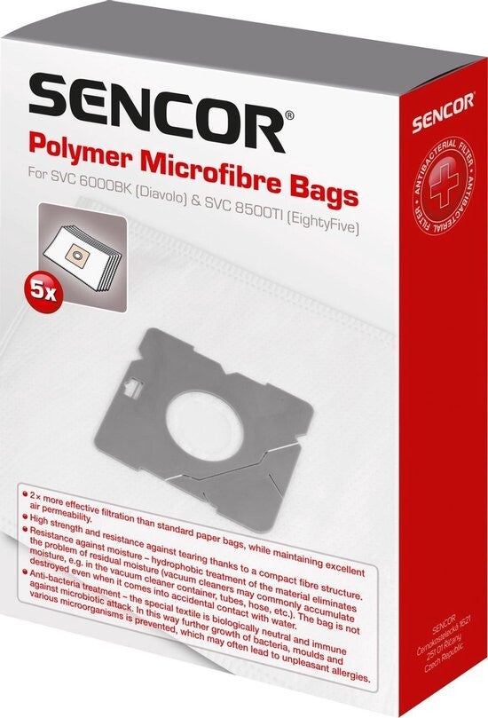Polymeer microvezelzakken voor eenmalig gebruik in stofzuiger SVC 5501/5000, SVC 6000, SVC 6001, SVC 8500, SVC 8501, SVC 8505, SVC 9300. 5 zakken.