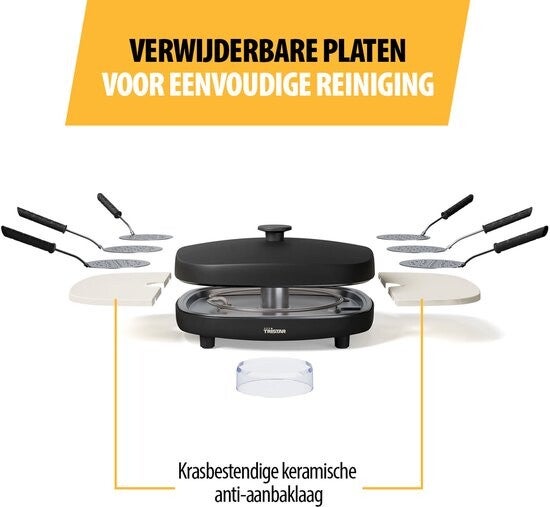 Slim ontworpen en makkelijk schoon te maken De verwijderbare plaat maakt schoonmaken snel en eenvoudig. De PFAS-vrije coating is veilig en milieuvriendelijk, en dankzij de antislipvoetjes en aanduiding lichtjes blijft het apparaat stabiel én duidelijk in gebruik. De 1 meter lange stroomkabel bied je bovendien voldoende bewegingsvrijheid op het aanrecht of de eettafel.