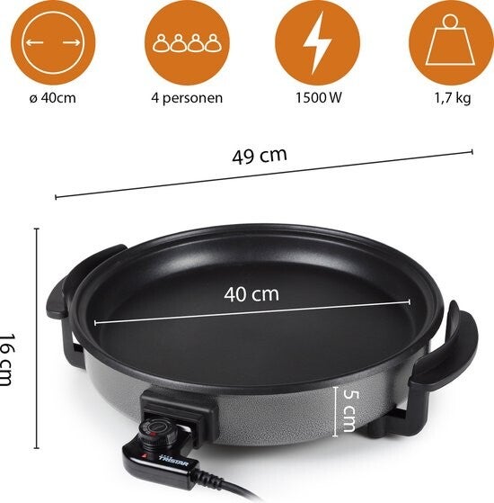 Tristar Elektrische hapjespan 1500W - PZ-2964 - Ø40cm Deksel - Maximale temperatuur 280⁰ C - PFAS-vrij