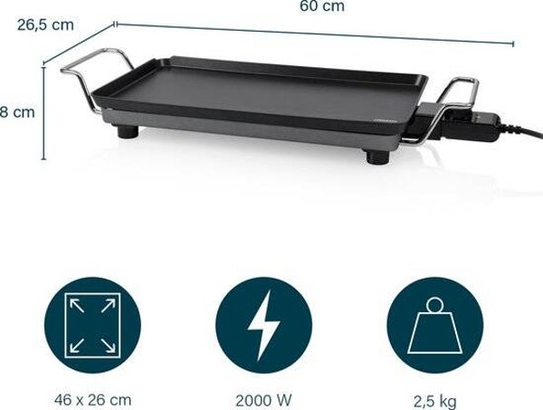 - Extra dikke 2.9 mm bakplaat met een bakoppervlakte van 46x26 cm voor extra stevigheid
