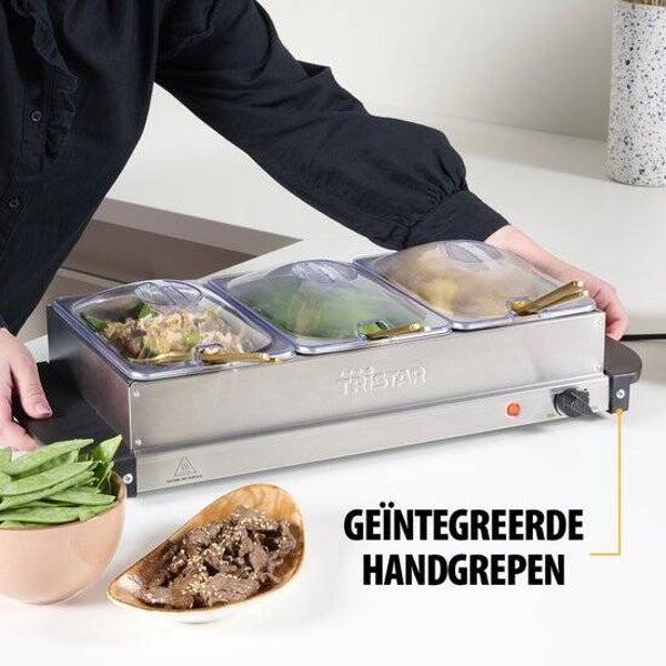 Tristar BP-6283 - Buffetwarmer 200W - Chafing dish - 3 x 1,4 Liter - Incl deksel - RVS
