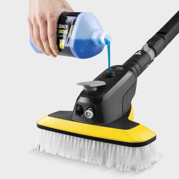 Bijzonder veelzijdig dankzij de slimme combinatie: de WB 7 Plus 3-in-1 wasborstel combineert een schuimstraal, een hogedruk vlakstraalsproeier en een zachte borstel in één product.