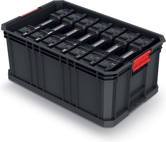 Transportmand met KISTENBERG MODULAR SOLUTION 20R KMS553520R7 organisatoren. Bevat 7 vrijstaande KMS3020 organizers voor het opbergen van kleine voorwerpen. De 4 bevestigingsgaten maken een eenvoudige bevestiging aan de muur mogelijk, waardoor de container verandert in een schap met uittrekbare organisatoren. Draagvermogen tot 50 kg. Afmetingen: 520 x 329 x 210 mm. Compatibel met de producten van de MODULAR SOLUTION serie en het KXBP6045 platform.