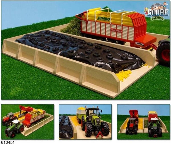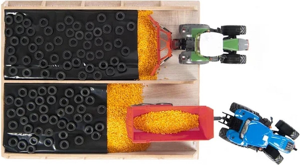 Stevige houten sleufsilo voor het opbergen van al het voer voor de beesten. Geschikt voor Siku producten. Wordt geleverd exclusief accessoires. Speelmais te bestellen onder artnr. 3199384.