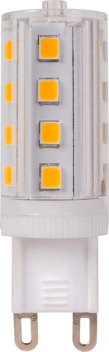 G9-lampen hebben een karakteristieke twee-pins fitting en worden vaak gebruikt in kleine armaturen zoals wandlampen, plafondlampen en decoratieve verlichting. Dit specifieke model verspreidt een warm wit licht en heeft een lichtopbrengst van 350 lumen. Dit licht wordt doorgaans geassocieerd met een warme en uitnodigende sfeer, ideaal voor woonkamers en slaapkamers. Ledlampen zoals deze zijn energiezuiniger en gaan langer mee in vergelijking met traditionele halogeenlampen. De ideale toepassing dus voor wie bewust wil verlichten en toch graag geniet van een ontspannen, gezellige sfeer.