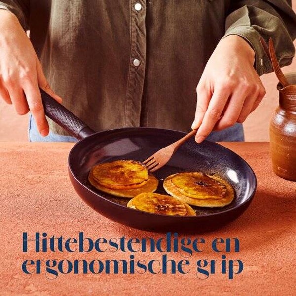 Maak van koken een zorgeloze ervaring met deze unieke, functionele non-stick koekenpan! Gemaakt van 100% gerecycled aluminium, biedt deze pan niet alleen uitstekende prestaties, maar draagt ook bij aan een duurzamer kookproces. Dankzij het aluminium warmt de pan snel op, waardoor je energiebesparend kookt en tijd bespaart tijdens het bereiden van je maaltijden. De ergonomische bakelieten handgreep zorgt voor optimaal comfort en blijft koel, zelfs bij hoge temperaturen. Deze koekenpan combineert comfort, duurzaamheid en energie-efficiëntie. Uiteraard is de pan ook volledig 100% PFAS-vrij.