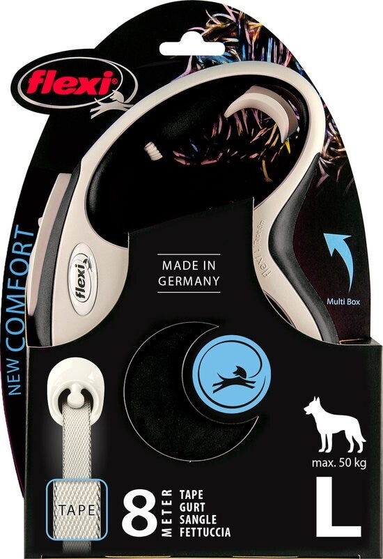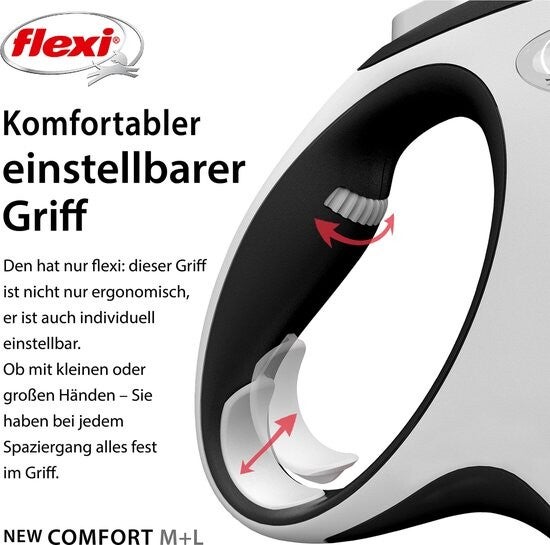 Flexi New Comfort Rollijn - Hondenriem - L - 8 Meter - Grote en Actieve Honden - Zwart Grijs