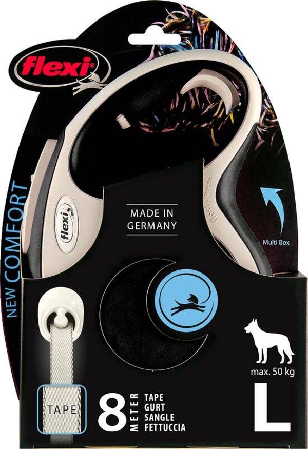 Het uitlaten van je viervoeter was nog nooit zo prettig als met de rollijnen van Flexi. Eén van die rollijnen is de New Comfort Cord L. Door zijn stijlvolle design en ergonomische handgreep met zachte onderdelen ligt de lijn goed in de hand. De lijn rolt altijd soepel op en af maar dankzij het innovatieve remsysteem kan je de lijn ook afstellen op een vaste lengte die je zelf fijn vindt. Door het tweekleurige design is deze rollijn een echte blikvanger. In tegenstelling tot de New Classic lijnen, kan je bij de New Comfort het handvat aanpassen aan de grootte van je hand. Ook handig te verstellen als je bijvoorbeeld in de winter dikke handschoenen draagt.