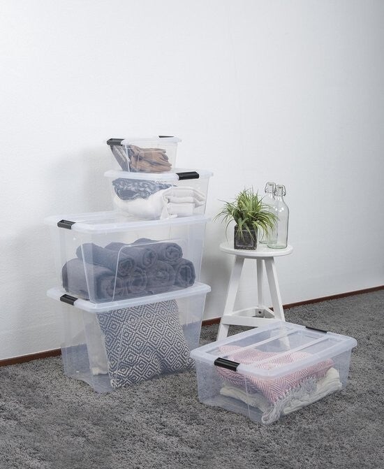 De New Topbox opbergboxen van Iris Ohyama zijn gemaakt van helder transparant materiaal voor gemakkelijke identificatie van de inhoud. Deze set opbergboxen bestaat uit 3 stuks met elk een inhoud van 15 liter. Het heeft een stapelbaar en modulair systeem dus kan wanneer de boxen leeg zijn in elkaar worden geschoven om ruimte te besparen. De New Topbox opbergbox heeft een deksel en stevige clips zodat de box altijd goed afgesloten is. Het design van de opbergbox zorgt ervoor dat je een handige grip hebt van onderop en daardoor kun je deze prima op hoogte plaatsen.