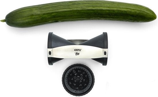 Spirelli, spiraalsnijder, juliennesnijder van Gefu. Met de spirelli tover je in een handomdraai eindeloze julienne-stroken uit groente. De Spirelli werkt eenvoudig, je gebruikt de snijder net als een puntenslijper. De Spirelli is voorzien van een handige resthouder met drie RVS pinnen die eenvoudig vast te klikken is. Hierdoor is het maken van groentespaghetti nog eenvoudiger!