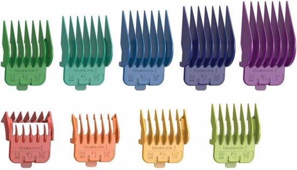 Trimmen wordt nu een stuk makkelijker en leuker dankzij de Remington ColourCut. Deze hoogwaardige tondeuse wordt geleverd met 9 gekleurde kammen van 0,5-25 mm. Welke lengte of look je ook wilt, kies de gewenste kleur en je kunt aan de slag.