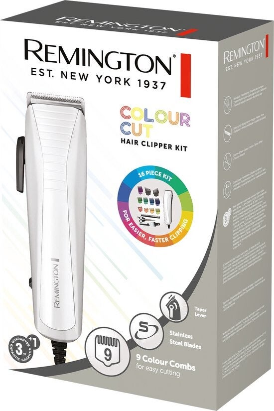 De Remington ColourCut is de perfecte trimset voor thuis. Geen gedoe, gewoon stylen. Dankzij de 16 opzetstukken is deze tondeuse ideaal voor het hele gezin: alle benodigdheden zijn voorhanden om een geheel eigen look te creëren. Voordat je begint met trimmen en modelleren werk je met de schaar en kam de langere haren bij, en na afloop verwijder je de achtergebleven haren met het reinigingsborsteltje.