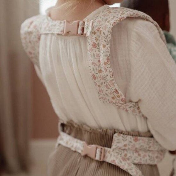 Ga samen op avontuur met deze comfortabele poppendraagzak en neem je babypop overal mee naartoe. De verstelbare, gewatteerde schouderbanden en de stevige heupgordel zorgen ervoor dat je pop goed en veilig zit. Draag je pop dicht tegen je aan of naar voren gericht, afhankelijk van je voorkeur. Uitgevoerd in het zachte en lieve Soft Flowers-dessin voor een stijlvolle uitstraling. Ideaal voor rollenspellen en het nabootsen van het verzorgen van een echte baby, terwijl je handen vrij blijven. Vanaf 3 jaar.