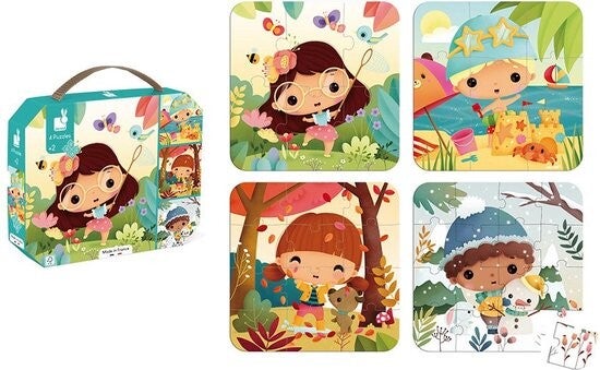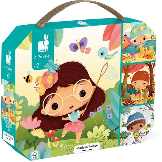Janod - Puzzel - 4 Puzzels De Vier Seizoenen - 6, 9, 12 En 16 Stukjes - Geschikt Vanaf 2 Jaar
