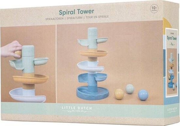 Laat de bal maar rollen! De spiraaltoren van Little Dutch zorgt voor eindeloos veel speelplezier. Deze kleurrijke set bestaat uit 5 subtiel gekleurde delen die jouw kleintje gemakkelijk op elkaar stapelt. Laat de ballen een voor een op de bovenste laag vallen en kijk hoe ze achter elkaar naar beneden rollen en slingeren. De spiraaltoren draagt bij aan de ontwikkeling van de hand-oog coördinatie en leert kleintjes over oorzaak en gevolg, waarmee het zowel leuk als leerzaam spelen is. Bij de spiraaltoren zitten standaard 3 lichte en gemakkelijk vast te pakken ballen in verschillende kleuren die bij beweging een geluidje maken. Dit speelgoed is uitgevoerd in de kenmerkende Little Dutch kleuren donkerblauw, blauw, lichtblauw, groen en okergeel. De afmeting is: 18 x 18 x 30 cm. Wordt geleverd in full-colour doos. Geschikt voor kinderen vanaf 18 maanden.