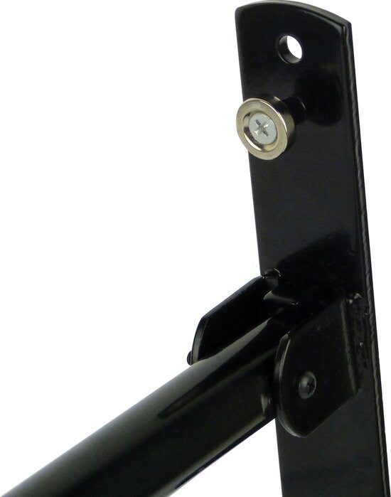 Als de beugel niet wordt gebruikt dan is deze eenvoudig op te klappen en blijft deze opgeklapt zitten door middel van een magneet. Ook geschikt om een snowboard of ski’s op te hangen. Deze Dresco opklapbare muurbeugel is maximaal belastbaar tot 15 KG.