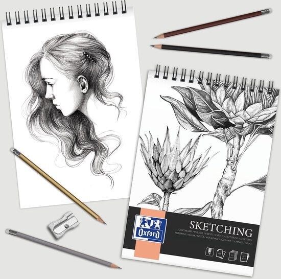 Dit Oxford A3 gespiraleerde schetsboek is de perfecte uitlaatklep voor je creativiteit. Met de unieke collectie Oxford schetsblokken voor potloodschetsen kun je al je gedachten en fantasieën op papier zetten. Of je nu een kunststudent bent of een professionele kunstenaar, de Oxford blokken zijn perfect voor elke kunstenaar. Het gestructureerde, zware kunstpapier is perfect voor tekenen en schetsen met potloden van verschillende hardheid. Laat je artistieke ziel de vrije loop en maak buitengewone schetsen in effen of gearceerde vorm. De enige grens aan creativiteit is je verbeelding.