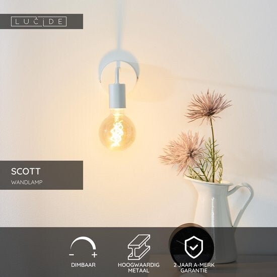 Lucide SCOTT - Wandlamp - 1xE27 - Wit