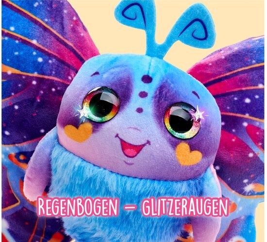 Magische regenboogogen: de glinsterende, grote ogen geven Fluffyfly een unieke charme. Verkrijgbaar in 4 fantastische kleurvarianten. 1 artikel per bestelling ad random.