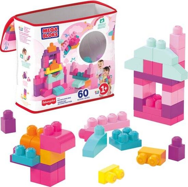 Mega Bloks First Builders Grote Bouwtas - Roze bouwstenen - 60 onderdelen