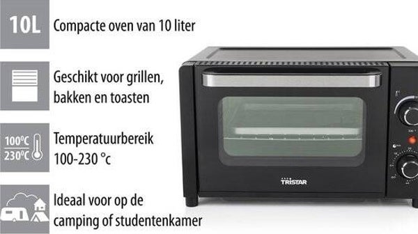 Tristar OV-3615 - Oven 800W - 10 Liter - Camping Vrijstaande Oven - 100 ⁰C - 230 ⁰C
