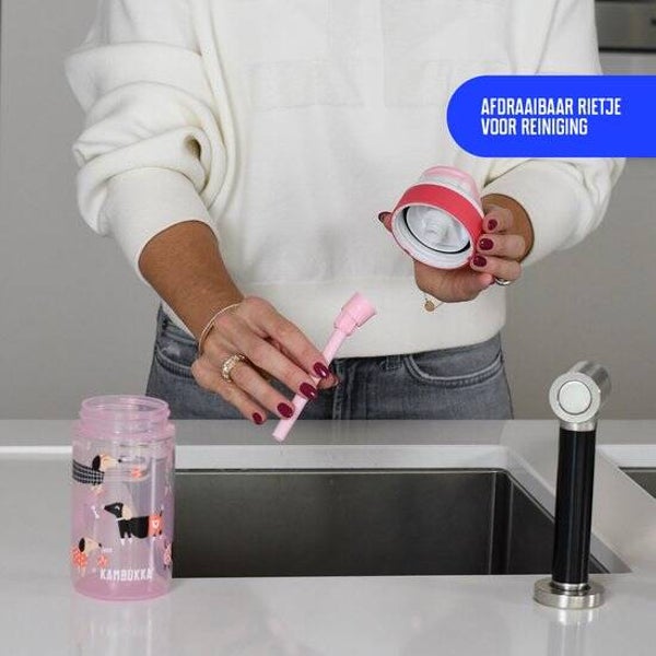 Deze 100 % lekvrije drinkbeker, mag gewoon in de vaatwasmachine en is dankzij de uitvoering in tritan bestand tegen geurtjes of vlekken. Zo kan je deze waterfles elke dag opnieuw gebruiken en meenemen op al jouw avonturen.