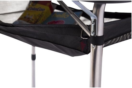 Een net voor onder het tafelblad. Ideaal voor het opbergen van kranten, tijdschriften, een telefoon of andere spullen. Perfect te combineren met Crespo tafels of universeel te gebruiken voor andere merken campingtafels door de klittenbandbevestiging.