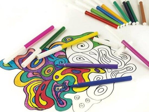 - Viltstiften in kartonnen etui met 10 verschillende kleuren.
