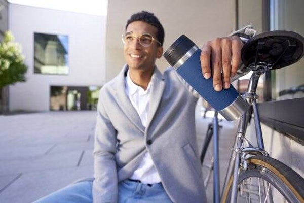 De nieuwe, extra makkelijke te openen draaidop is snel en intuïtief dicht te draaien voor bijvoorbeeld het bijvullen bij je favoriete koffiezaakje.