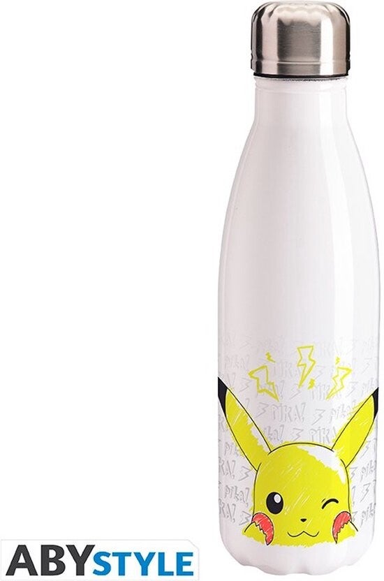 Waterfles Pokémon Pikachu. Schattig en vol vreugde heeft Pikachu, ieders favoriete Pokémon, zijn dagelijkse dosis hydratatie nodig en gebruikt daarvoor deze mooie drinkfles van ABYstyle! 500ml. Niet geschikt voor vaatwasser en magnetron!