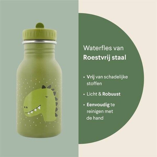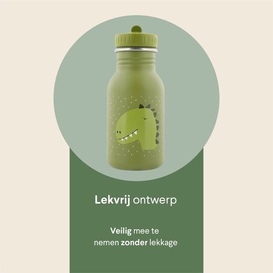 Trixie Drinkfles - Mr. Dino - RVS Waterfles voor kinderen - 350ml - Lekvrije Fles - Groen