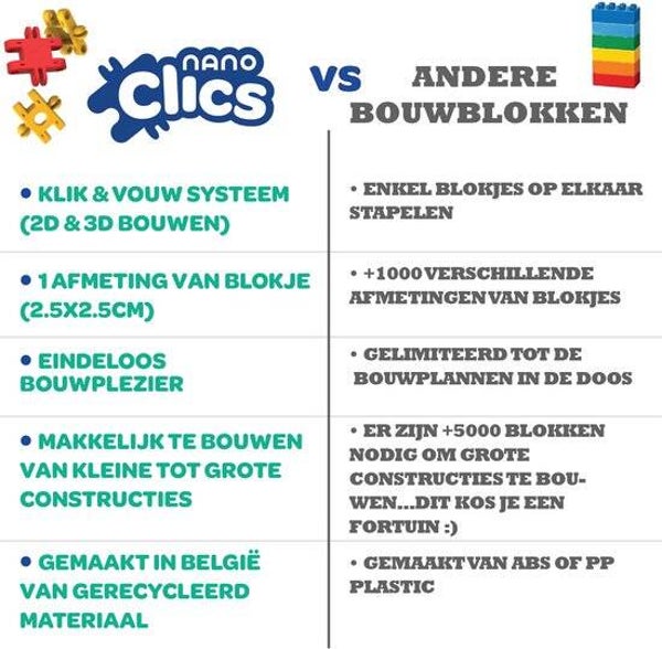 EDUCATIEF SPEELGOED - het plug-in spel van Nano Clics bevordert de creativiteit en motoriek van je kind. Met Nano Clics introduceren we ook een nieuw blokje met een gaatje in het midden. Hiermee kan je nog gedetailleerder bouwen dan ooit tevoren!
