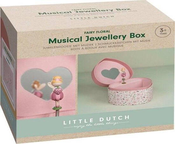 Stap binnen in een wereld vol betovering met het Little Dutch juwelenkistje uit de serie Fairy Garden met muziek. Dit kleurrijke kistje biedt voldoende ruimte voor de mooiste sieraden en schatten. Wanneer het kistje opengaat, speelt het muziekje terwijl één van de feetjes voor de spiegel danst. Werkt zonder batterijen, het muziek mechanisme wordt met de sleutel op de achterzijde van het kistje opgedraaid. Een waardevol artikel om te koesteren, dat de zintuigen van je kleintje stimuleert en inspireert.