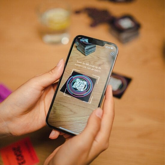 - Kies een muziekkaart en scan de QR-code met de Hitster app om het lied automatisch af te spelen op Spotify*.