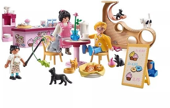 Deze gedetailleerde PLAYMOBIL-speelset brengt een perfecte mix van cafécultuur en kattengezelschap tot leven!