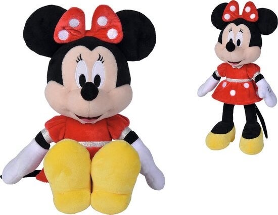 Schattige, klassieke Nicotoy Disney Minnie in haar nieuwe rode jurk, 35 cm groot. Vanaf 0m+.