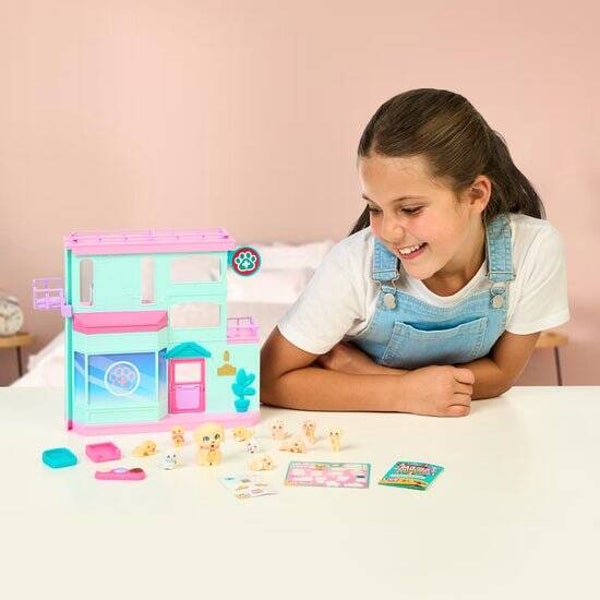 Deze dubbelzijdige Little Live Pets Mama Surprise Baby Ziekenhuis heeft meerdere verdiepingen en allerlei ruimtes waarin Mama's Retriever-puppy's geboren én verzorgd kunnen worden. Scan Mama op de röntgenfoto om te zien hoeveel puppy's ze verwacht. Veeg vervolgens haar wangen af met water en zie hoe ze rozig worden: nu is ze klaar om haar baby's te krijgen! Leg haar in het bed, doe de gordijnen dicht en open en een schattige puppy is geboren! Herhaal dit om nóg 2 baby's te ontdekken. Doe de pups in bad om hun geheime moedervlekjes te onthullen. Elke puppy komt in een schattige kleine pose om hun unieke persoonlijkheid te laten zien. Met 5 leuke accessoires en allerlei ruimtes voor badderen, spelen, eten en een lift om naar boven en beneden te gaan! Deze speelset biedt eindeloos veel manieren om voor je nieuwe Retriever-familie te zorgen. Breid de familie uit met het Mama Surprise Families Adoptie Pakket (los verkrijgbaar) waarin nog meer schattige Retriever Pups te ontdekken zijn. Kinderen beleven een ultieme speelervaring met fantasierijk spel, leuke onthullingen en schattige accessoires uit elk verzamelpakket. Bouw en laat je hondengezin groeien: er zijn 8 verschillende puppyfamilies om te verzamelen, waaronder Beagles, Frenchies, Huskies, Poedels, Spaniels, Maltezers en Retrieverfamilies. Er is een familiekaart bijgevoegd die alle leden van elke puppyfamilie laat zien - welke puppy's moet je vinden in het adoptiepakket om je gezin compleet te maken? Leeftijdsindicatie: 5 jaar+.