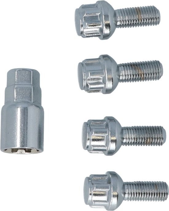 Met deze Carpoint wielbouten weet je zeker dat jouw wielen nooit meer gestolen zullen worden! Deze set bevat vier bouten en één speciale dop die in een standaard dopsleutel past. De bouten hebben een bloemvormig profiel en zijn daarom alleen aan te draaien met de speciale dop.
