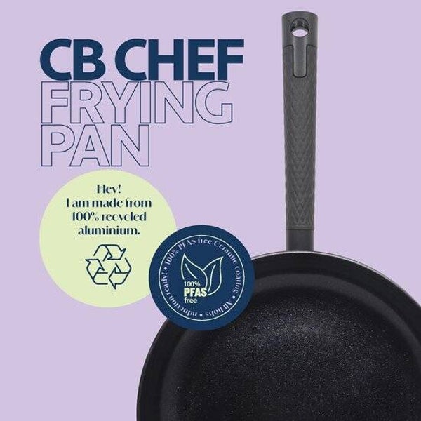 CB Chef koekenpan Ø 20cm - Non stick - 100% Recycled - Pfas-vrij - Keramisch - Inductie geschikt – Zwart