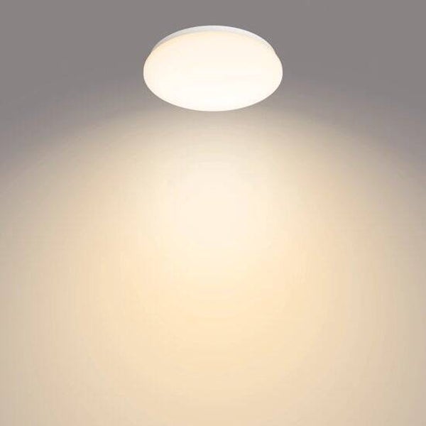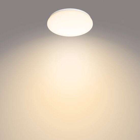 De witte, ronde Philips Moire plafondlamp geeft warmwit LED-licht, is energiezuinig en bijzonder duurzaam. Deze kleine plafonnière is geschikt voor praktische ruimtes, zoals de hal, overloop of het toilet. Bovendien gaat deze energiezuinige LED-lamp lang mee.