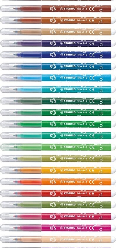 STABILO Trio A-Z - Viltstift - Met Ergonomische Driekantige Gripzone - Etui Met 30 kleuren