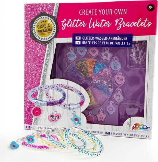 Grafix Knutselpakketten - Modepakketten voor Meisjes - Armband Maken met Water Glitter, Charmes & Sparkles - Speelgoed Meisje 6 Jaar - Sieradenpakket