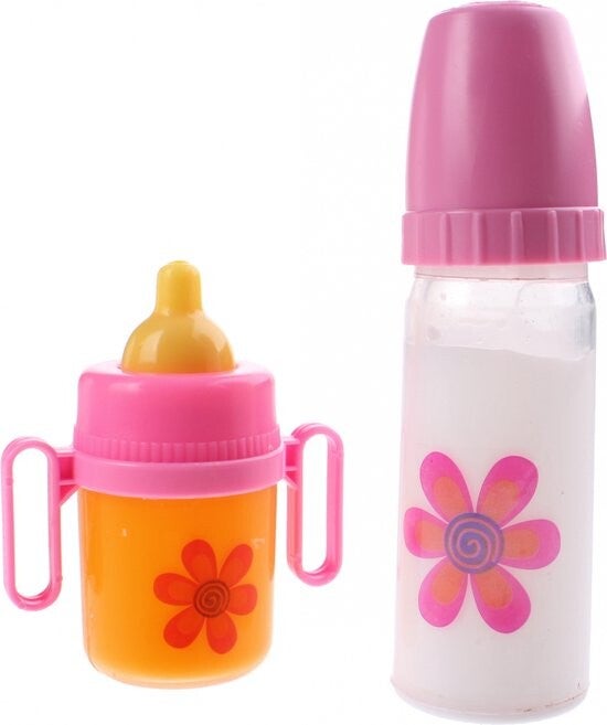 Super leuke set met drinkflessen waarmee jij jouw babypop altijd wat te drinken kunt geven. Wanneer je de flesjes op zijn kop houdt dan lijkt het net alsof de vloeistof echt uit het flesje verdwijnt.