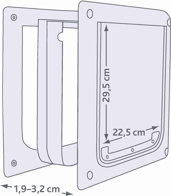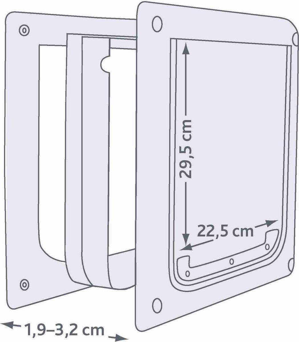 Het Trixie 2-Weg Hondenluik Wit S-M / 30 -36 cm cm is een kunststof huisdierluik voor honden, met flexibele, geluidsarme klep, met vergrendeling. Ideaal om jouw honden de mogelijkheid te geven naar eigen behoeven naar binnen en naar buiten te gaan! Dit luik is voorzien van een flexibele, transparante klep die geluidsarm sluit. Door het uitneembare, metalen paneel is vergrendeling mogelijk en bescherm je jouw woning tegen ongewenste dieren en regen en wind. Inclusief tunnelelement, met een inbouwdiepte van 19 - 32 mm.
