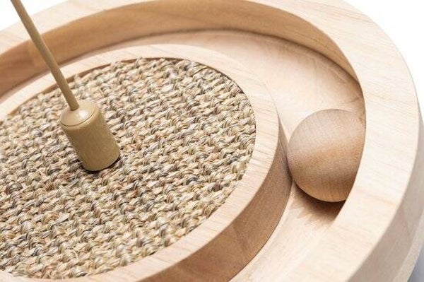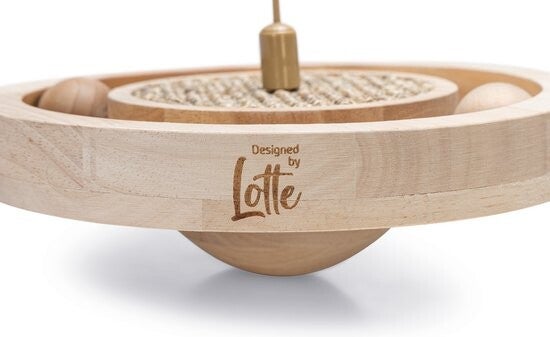 Spelen, krabben, natuurlijke uitstraling en een wiebel effect, dat is waar dit Designed by Lotte Kattenspeelgoed Winni voor staat. Dit kattenspeeltje, gemaakt van rubberhout, staat prachtig binnen jouw interieur. Bovendien wordt jouw kat extra getriggerd om met dit speeltje te spelen door de diverse speelse elementen. Zo beschikt het speeltje over een sisal krabmat, waar jouw kat al spelenderwijs zijn of haar nagels mee kan verzorgen. Daarnaast zit er in het midden van het speeltje een stokje waar 2 speelballetjes en een veer op bevestigd zijn. Zodra jouw kat met zijn of haar pootjes tegen deze speelelementen aantikt zal kattenspeeltje Winni gaan wiebelen, vanwege de ronde houten bodem. Door het wiebel effect zal jouw kat nog meer uitgedaagd worden om te spelen met dit prachtige kattenspeeltje.