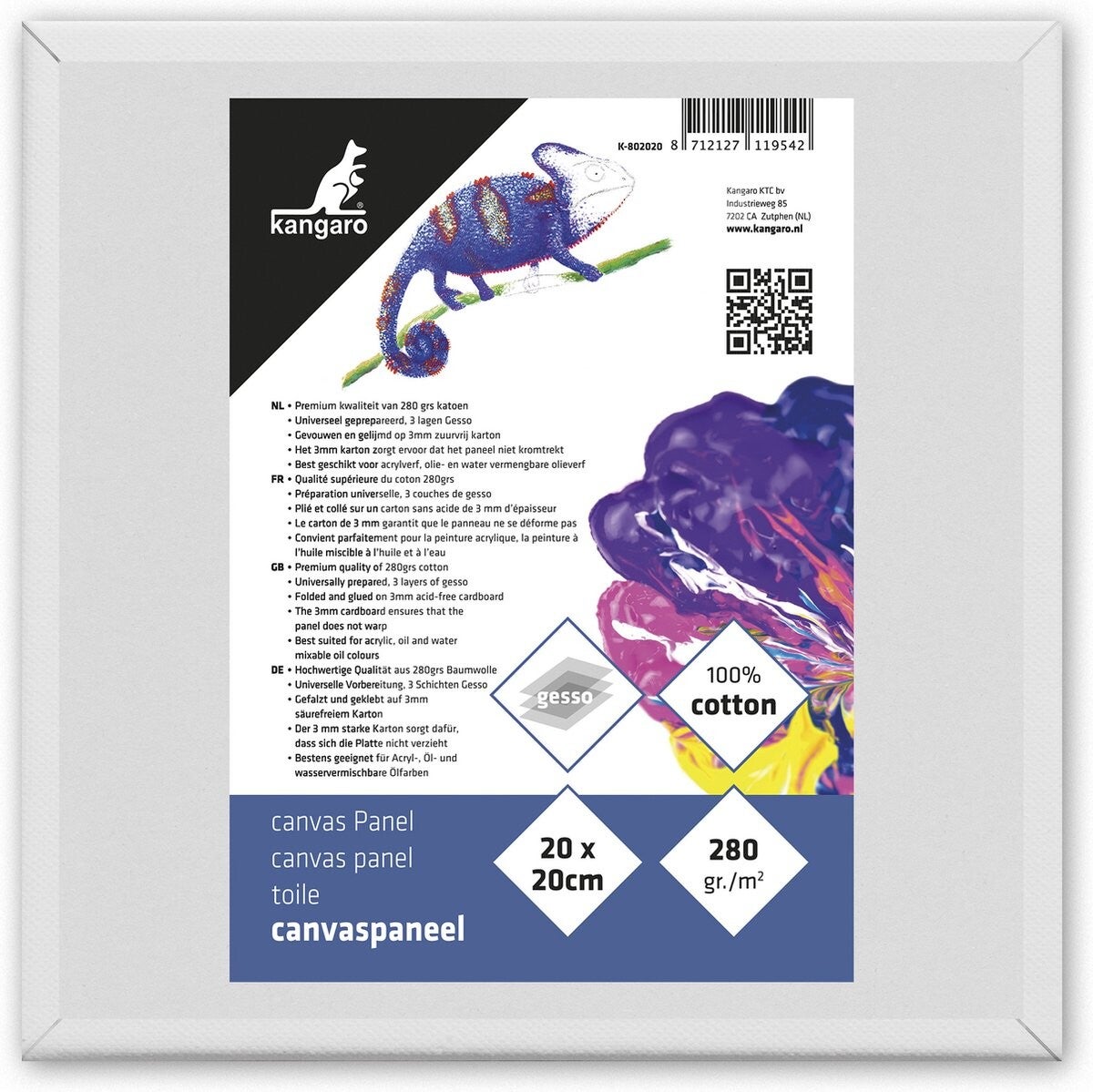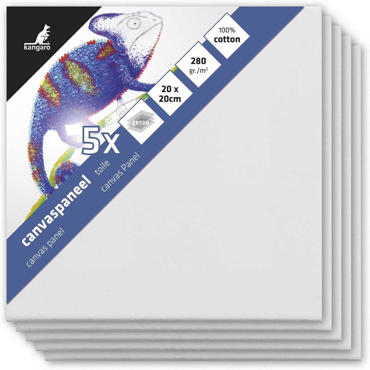 Kangaro canvaspaneel - 20x20 cm - 5 stuks - 3mm board - 280gr katoen - 3x primed - K-802020