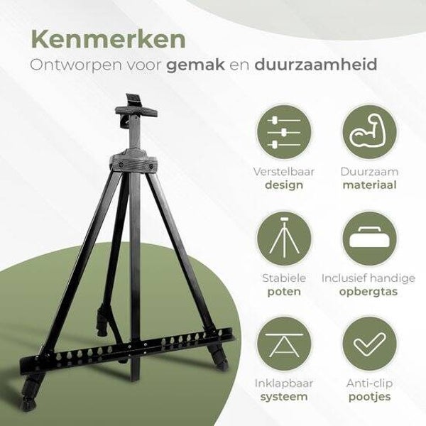 Bent u op zoek naar een hoogwaardige schildersezel die verstelbaar en inklapbaar is? Dan is de Dayshake schildersezel de perfecte keuze voor u! Gemaakt van kwalitatief hoogwaardig aluminium, biedt deze schildersezel niet alleen stabiliteit en duurzaamheid, maar ook flexibiliteit en gebruiksgemak.
