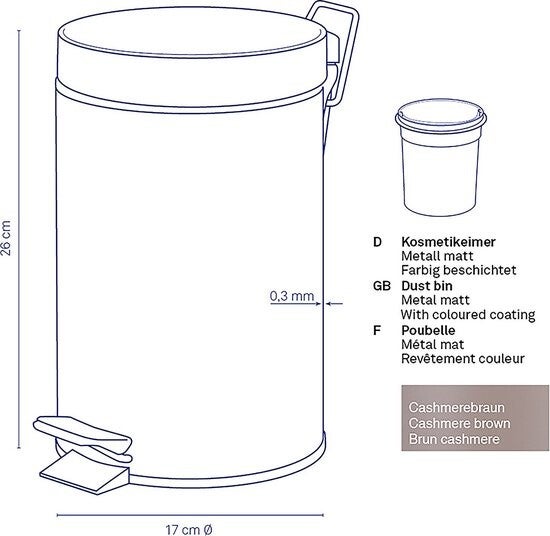 Monaco Pedaal Afvalemmer - 3 l - Bruin - Kela