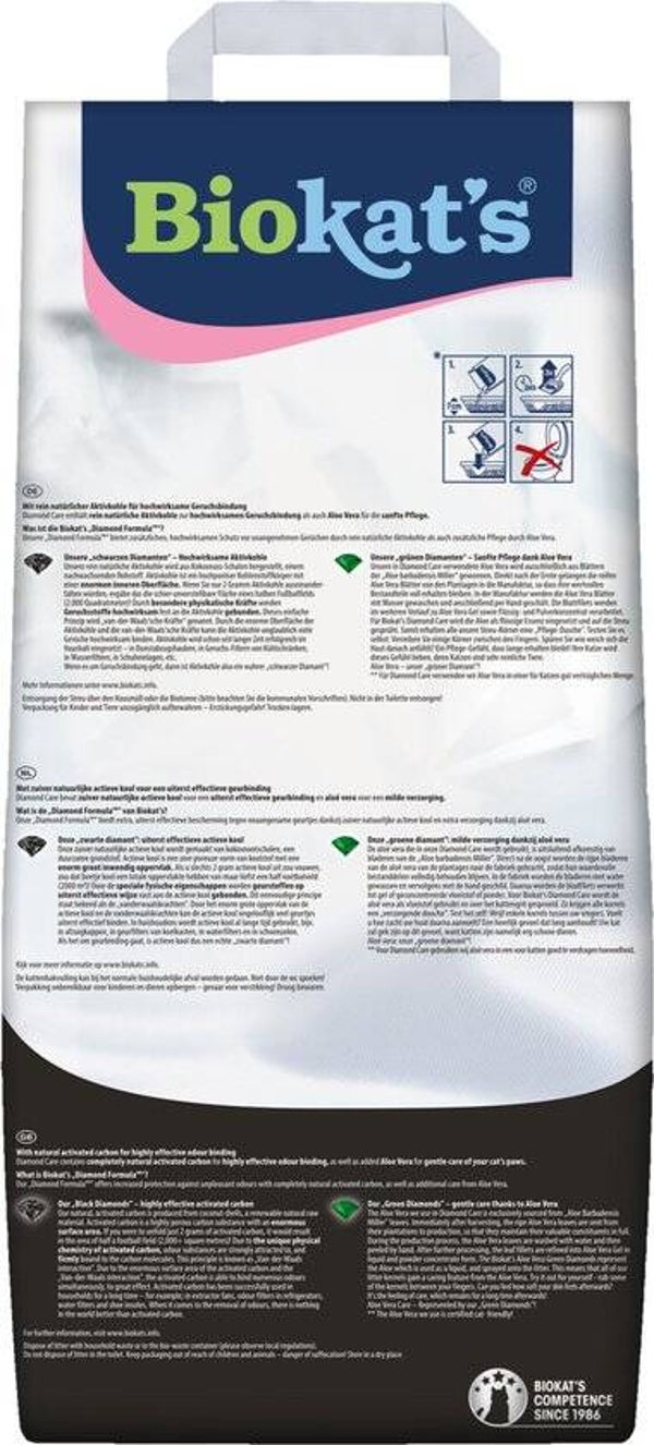 - LEVERINGSOMVANG: 1 papieren zak 10 liter Biokats Diamond Care Fresh fijne kattenbakvulling met de geur van babypoeder -Made in Germany